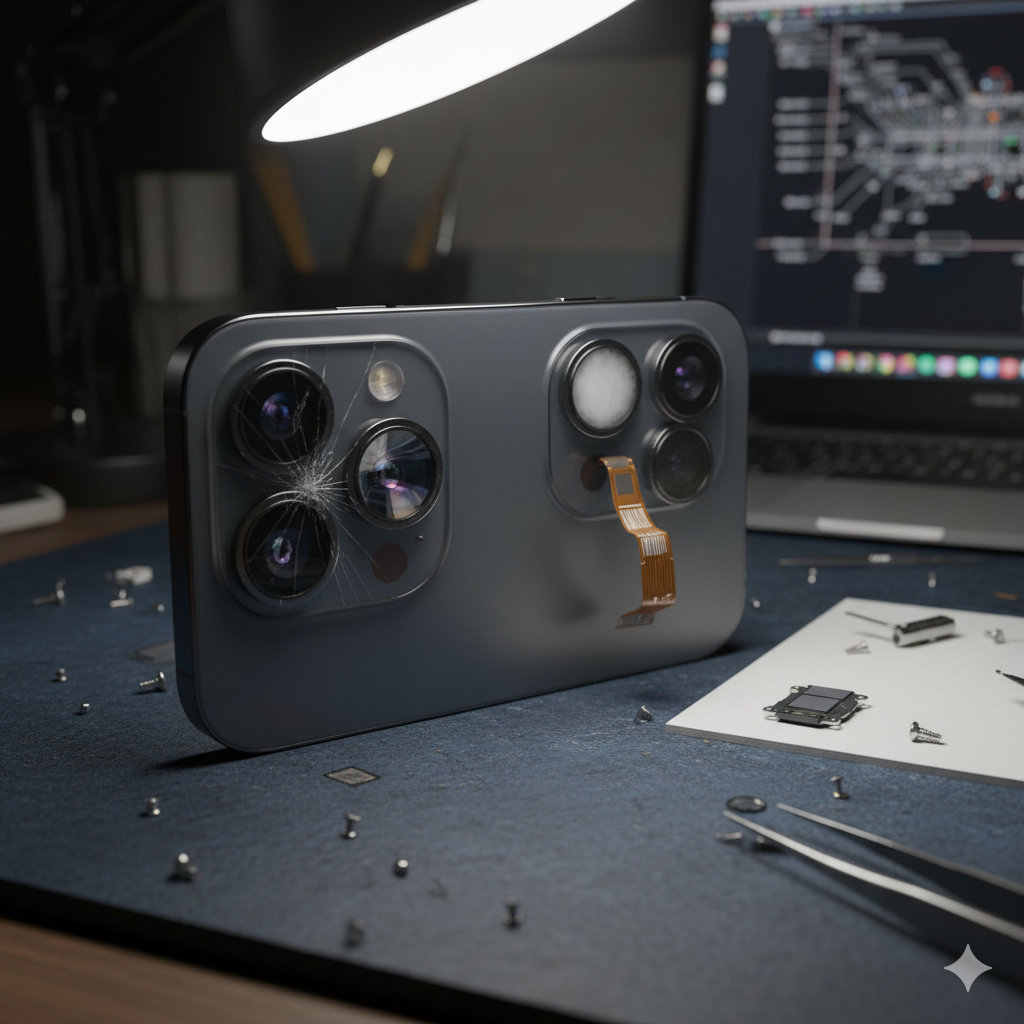 অনেক সময় iPhone 14 Pro Max–এর ক্যামেরা অ্যাপ খুললে ব্ল্যাক স্ক্রিন দেখা যায়, অ্যাপ ক্র্যাশ করে বা “camera not available” টাইপ মেসেজ আসে যা সাধারণত সফটওয়্যার বাগ, ক্যাশ সমস্যা বা সিস্টেম কনফ্লিক্টের কারণে হয়। আবার অনেকে অভিযোগ করেন 3X জুমে গেলে ক্যামেরা ফ্লিকার করে, ফোকাস ধরে না বা ভেতর থেকে ভাইব্রেটিং সাউন্ড আসে, যা বেশিরভাগ ক্ষেত্রে টেলিফটো লেন্সের হার্ডওয়্যার বা অপটিক্যাল ইমেজ স্ট্যাবিলাইজেশন (OIS) মডিউলের সমস্যার ইঙ্গিত দেয়।
