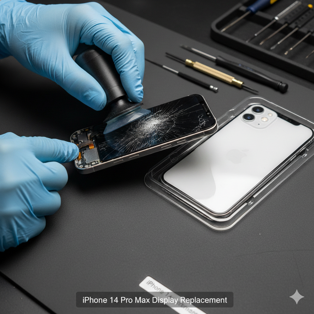 আমরা শুধুমাত্র Original বা OEM Standard ডিসপ্লে ব্যবহার করি যা iPhone 14 Pro Max-এর সাথে 100% সামঞ্জস্যপূর্ণ। - ডিসপ্লে রিপ্লেসমেন্ট প্রসেস:
