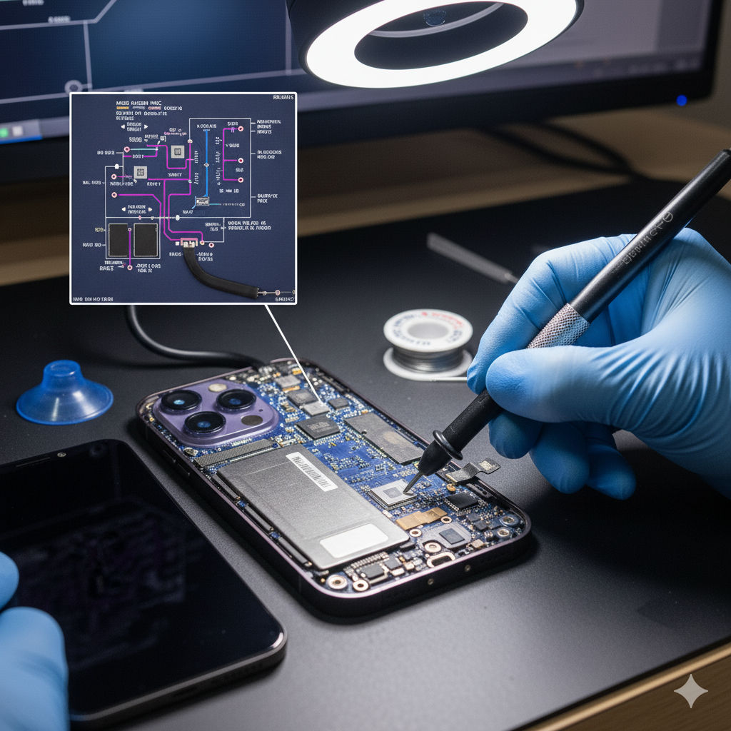 iPhone 14 Pro Max একটি অত্যাধুনিক স্মার্টফোন যা A16 Bionic চিপসেট এবং উন্নত সফটওয়্যার দিয়ে সজ্জিত। তবে মোডেম ফার্মওয়্যার সমস্যার কারণে ফোনের কনেক্টিভিটি বাধাগ্রস্ত হতে পারে। "No Modem Firmware" সমস্যা সাধারণত তখন দেখা দেয় যখন RF (Radio Frequency) লেয়ার রিপ্লেসমেন্ট বা জটিল সার্কিট পরিবর্তনের সময় বোর্ড কনফিগারেশন রেজিস্টরসমূহ সঠিকভাবে মিথ্যা হয় বা হারিয়ে যায়। ফলে মোডেম সিস্টেম ফোনে ঠিকভাবে কাজ করতে পারে না এবং নেটওয়ার্ক সিগন্যাল পাওয়া বন্ধ হয়ে যায়।আমাদের সার্ভিসে আমরা প্রথমে ফোনের RF লেয়ার এবং বোর্ডের কনফিগারেশন রেজিস্টরগুলো পরীক্ষা করি। ফোনের আসল RF লেয়ার থেকে প্রয়োজনীয় রেজিস্টর গুলো ধীরে ধীরে অপসারণ করে এবং ডোনার বোর্ডে সঠিকভাবে সোল্ডার করি। এরপর মোডেম ফার্মওয়ার সফটওয়্যার ও হার্ডওয়্যার সঠিক ভাবে ইনিশিয়ালাইজ হয় কিনা পরীক্ষা করা হয়। এই সার্ভিসটি অত্যন্ত নিখুঁত ও সাবধানতার সঙ্গে করতে হয় কারণ এটি ফোনের সিগন্যাল এবং নেটওয়ার্ক ক্ষমতার ওপর সরাসরি প্রভাব ফেলে।আমাদের দক্ষ টেকনিশিয়ানরা অরিজিনাল পার্টস এবং উন্নত সরঞ্জাম ব্যবহার করে পেশাদার মেরামত সেবা প্রদান করে। সার্ভিস শেষে আপনি মোডেম ফার্মওয়্যার দেখতে পারবেন এবং ফোনে সিগন্যাল ফিরে আসবে। সেন্সর, IMEI তথ্য সবকিছু আবার সঠিকভাবে কাজ করবে। আমাদের এই সার্ভিস আপনার ফোনের নেটওয়ার্ক সংক্রান্ত যেকোনো সমস্যা সমাধানে কার্যকর। আমরা নিশ্চিত করি যে, আপনার ডেটা সার্ভিসিং প্রক্রিয়ায় নিরাপদ থাকবে এবং মেরামতের পর ফোন পূর্বের মত খাঁটি ও গোছানো থাকবে।