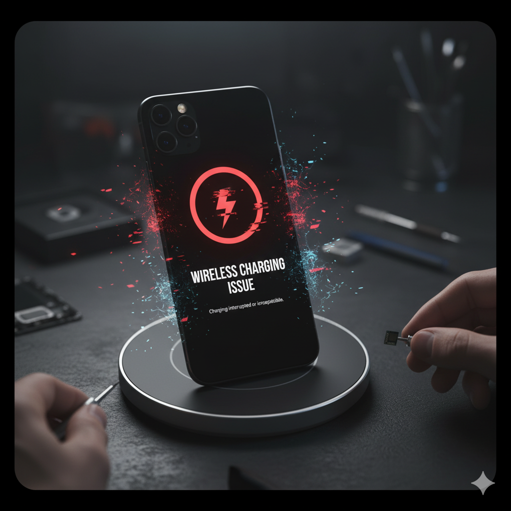 ওয়্যারলেস চার্জিং ইস্যুর বেশিরভাগ কারণ হলো চার্জার ও ফোনের মধ্যে সঠিক যোগাযোগ না হওয়া, ধূলিকণা, কেস ইত্যাদি বাধা, বা সফ্টওয়্যার বাগ। এছাড়াও হার্ডওয়্যার ত্রুটিও থাকতে পারে।