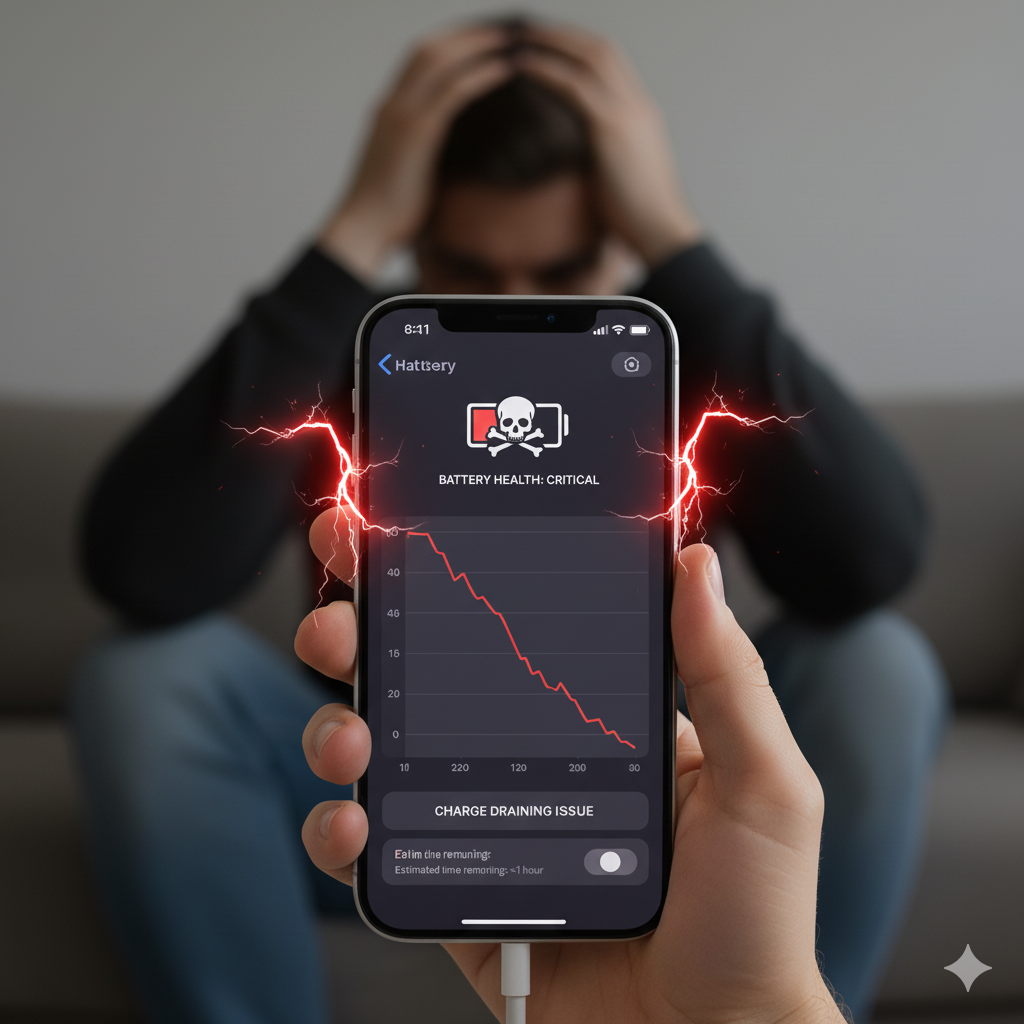 চার্জ ড্রেইনের লক্ষণ: লক স্ক্রিনে ১৫-২০% ইউজ, Weather অ্যাপ বা হোম স্ক্রিন উইজেট কনজিউম করে, ৫G সিগন্যাল সার্চে হিট হয়, ব্যাকগ্রাউন্ড রিফ্রেশ চালু। কারণ: iOS বাগ (iOS 18-এ ইনডেক্সিং), অটো-ব্রাইটনেস অফ, লো পাওয়ার মোড না চালু, ব্যাটারি হেলথ ৮০% এর নিচে বা পাওয়ার IC ফল্ট। DIY টিপস (উইজেট রিমুভ, রিস্টার্ট) কখনো কাজ করে, কিন্তু হার্ডওয়্যার ইস্যুতে প্রফেশনাল সার্ভিস লাগে। আমাদের সার্ভিসে 3uTools দিয়ে ডিটেল স্ক্যান করি।