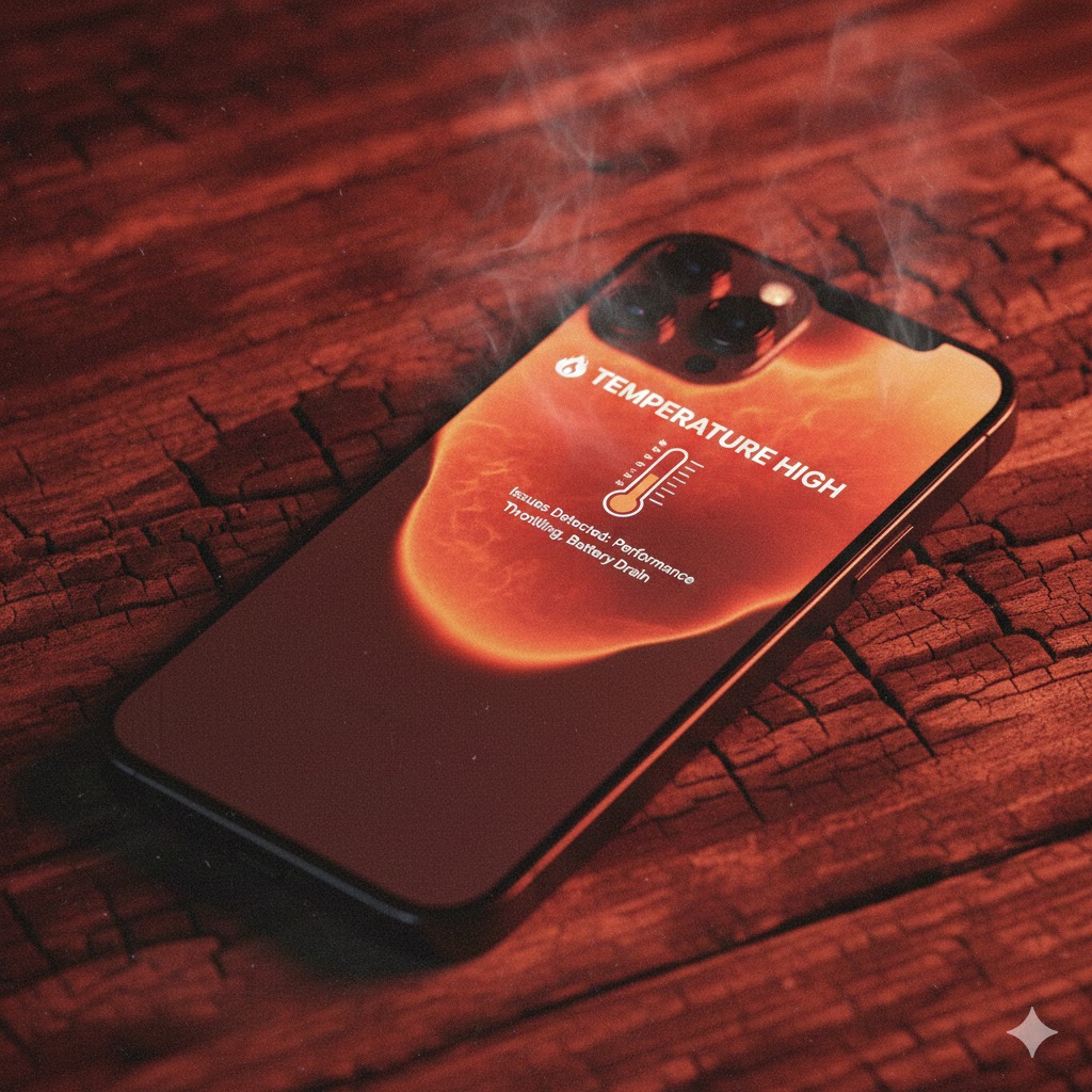 আইফোন ১৬ প্রো ম্যাক্সের A18 Pro চিপ ৩ ন্যানোমিটার প্রযুক্তিতে তৈরি এবং ৪৬৮৫mAh ব্যাটারি সহ উচ্চ পারফরম্যান্স দেয়, কিন্তু বাংলাদেশের গরম আবহাওয়ায় (৩৫°+°C) থার্মাল থ্রটলিং, "iPhone needs to cool down" ওয়ার্নিং বা অ্যাপ ক্র্যাশ দেখা যায়। এই সমস্যা গেমিং, 4K ভিডিও রেকর্ডিং বা মাল্টিটাস্কিংয়ে বাধা দেয়।