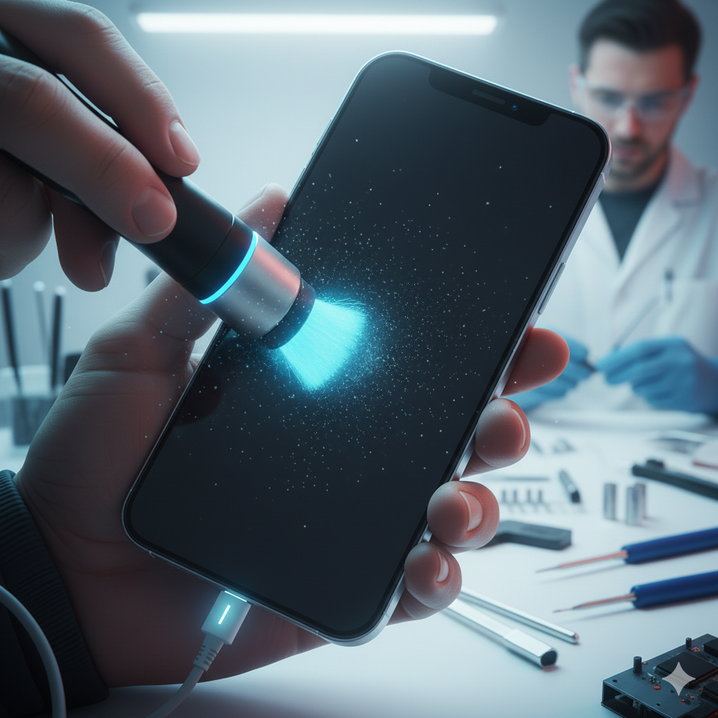 স্পিকার গ্রিলের ভিতরে ধুলো ও ঘাম জমে শব্দ কমে যাওয়ার সমস্যা দেখা দেয়। বিশেষ সাকশন ও এয়ার জেটের মাধ্যমে সেই ধুলো অপসারণ করা হয়। - চার্জিং পোর্ট ও লাইটনিং কানেক্টর ক্লিনিং: