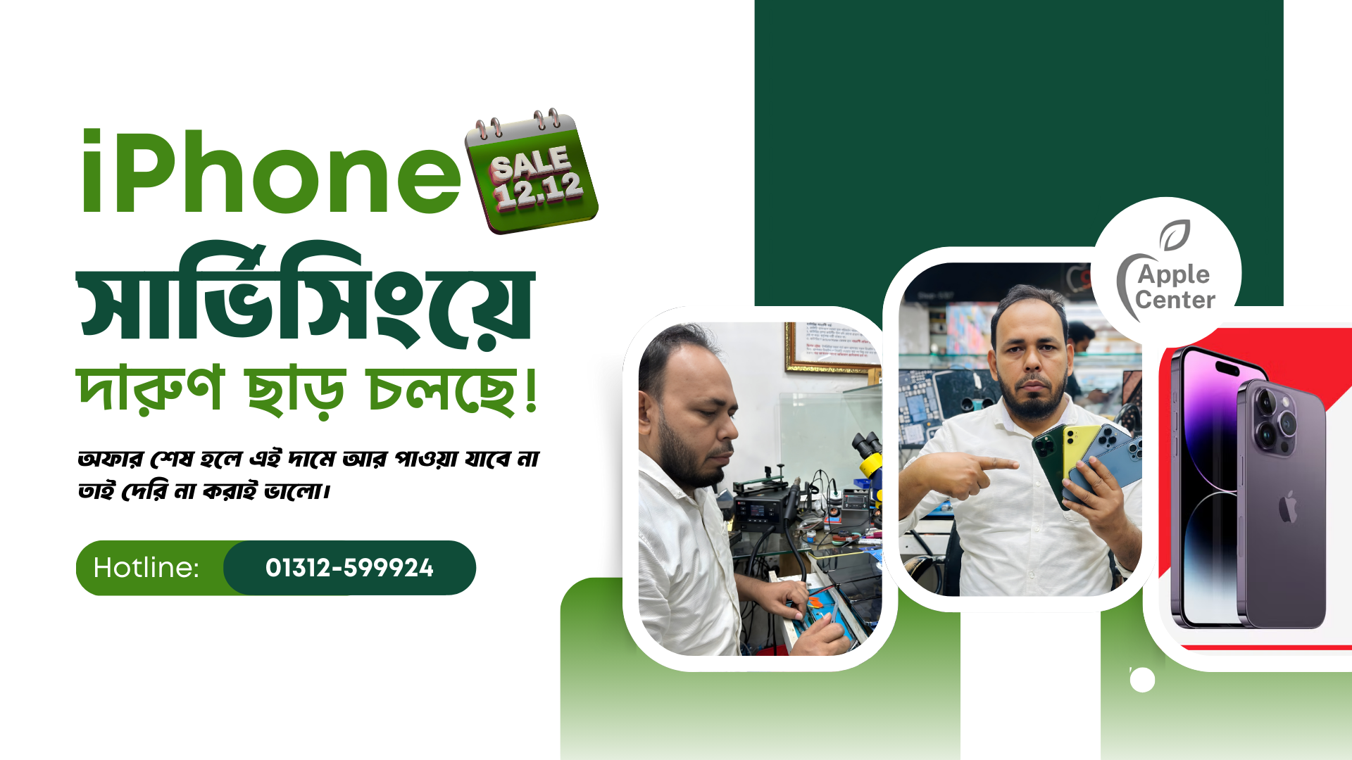 অ্যাপেল সেন্টারে ডিসপ্লে, ব্যাটারি, চার্জার, এবং সার্ভিসিং এর উপর সর্বোচ্চ ২৫% ডিসকাউন্ট!